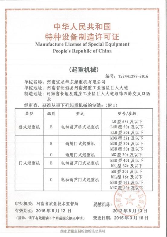河南宝起华东起重机有限公司